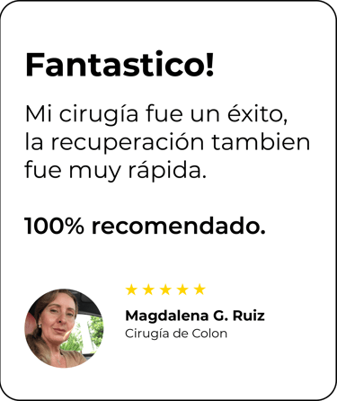 Mi cirugía laparoscópica salió perfecta, y la recuperación fue más rápida de lo que esperaba. Sin duda, lo recomiendo al 100%."